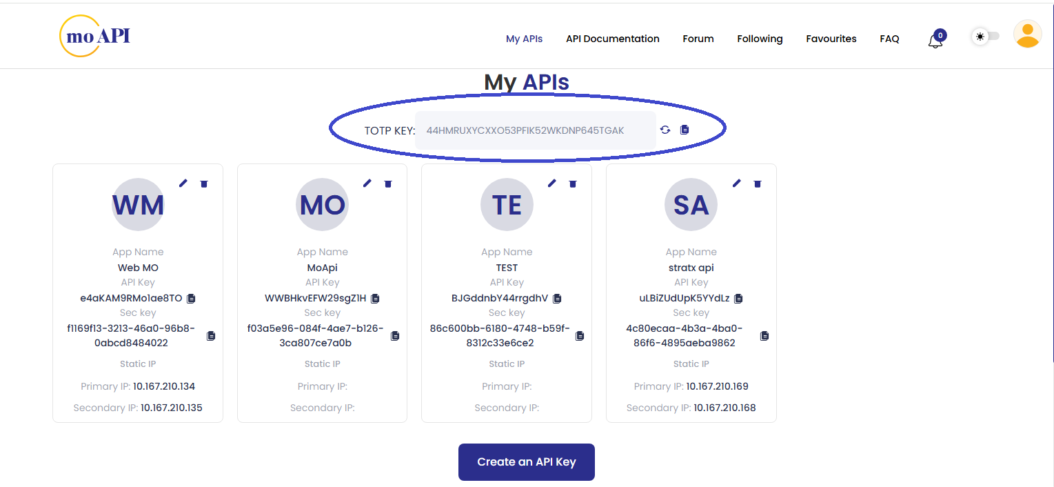 User will get the TOTP secret key i.e. 32 character from profile dashboard shown as below